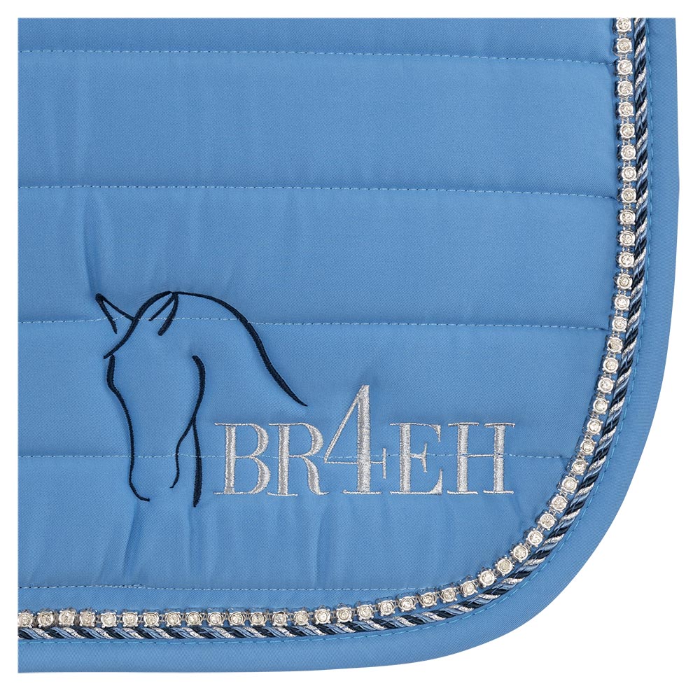 Smukt underlag med glimtende rhinsten hele vejen langs den fine piping.Underlaget er anatomisk formet med stødabsorberende fyld og ligger rigtig godt på hestens ryg uden at glide.Materialet mod hestens ryg er udarbejdet i Coolplus, som giver optimal cirkulation og holder hesten tør under underlaget. Fås også i springmodel. Gjord- og sadelstropper i velcro.Pony kan sagtens anvende str. cob 700 g. fyld
