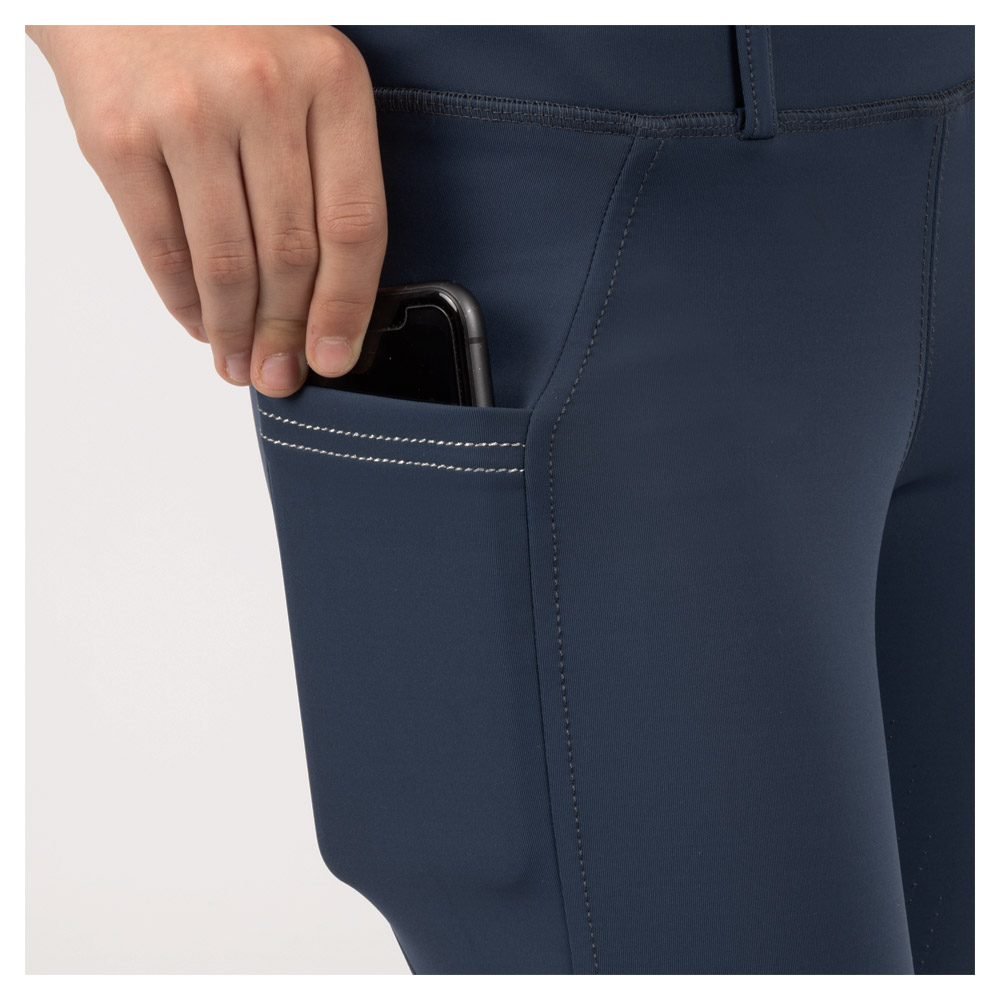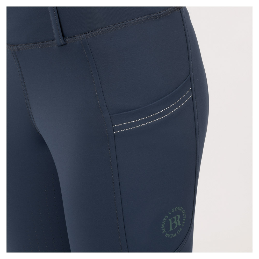 Lækre ridebukser med så mange fine detaljer. – Bred elastik i taljen, der sikrer en god pasform. – Mulighed for at sætte bælte i. – BR logo bagpå elastikken. – Silicone full grip. – Mobillomme.