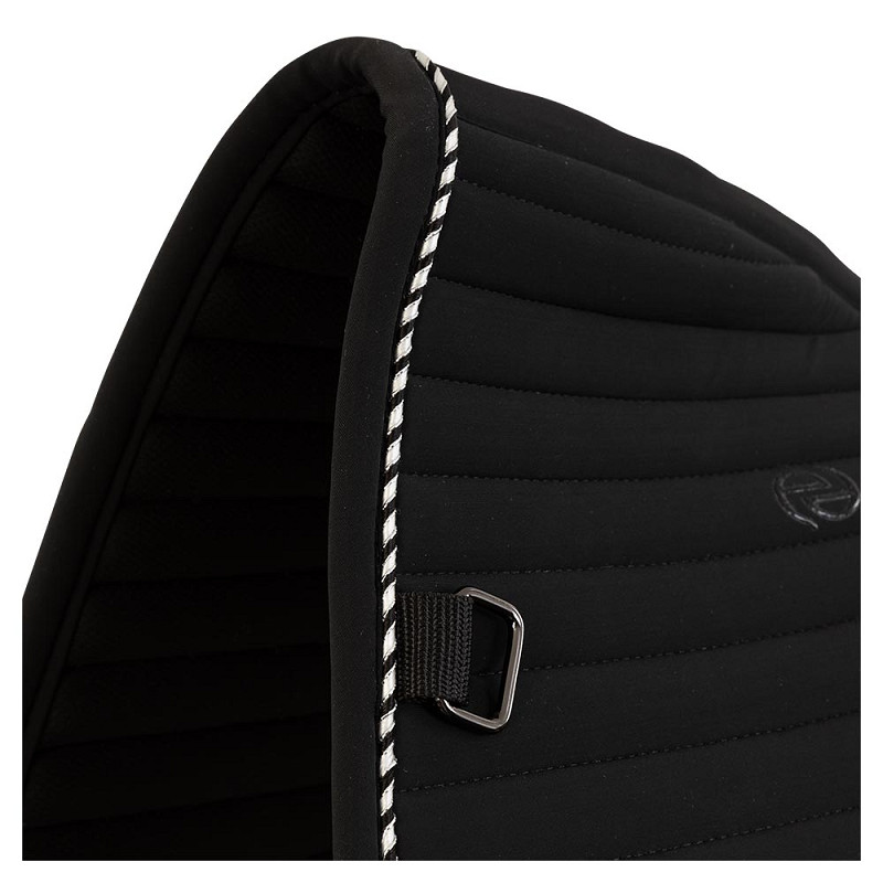 Underlag fremstillet i fugtregulerende materiale, som sikrer at hesten holdes tør under ridning. Flot tofarvet pipe hele vejen rundt samt flot diskret dekoration på siden. Siliconeprint øverst på underlaget sikrer at underlaget ligger stabilt under sadlen. Fås også i springmodel.