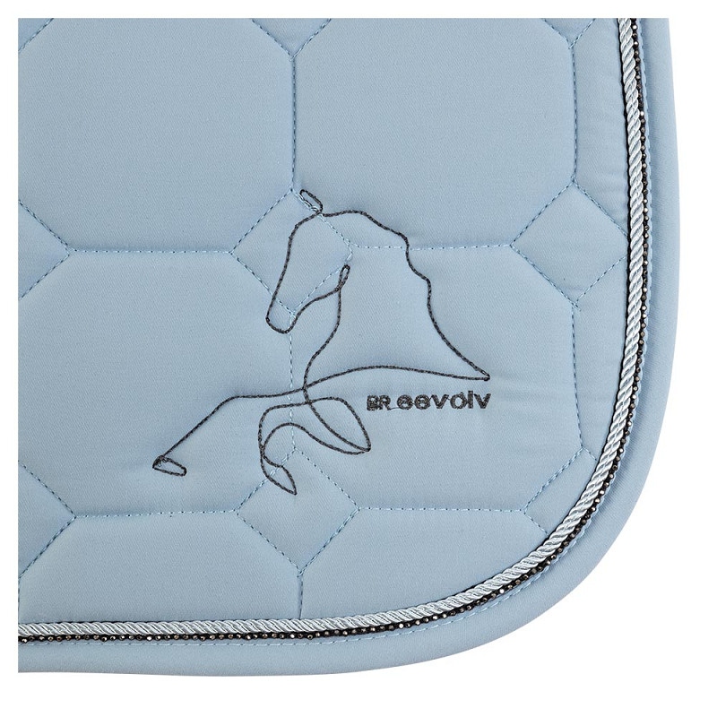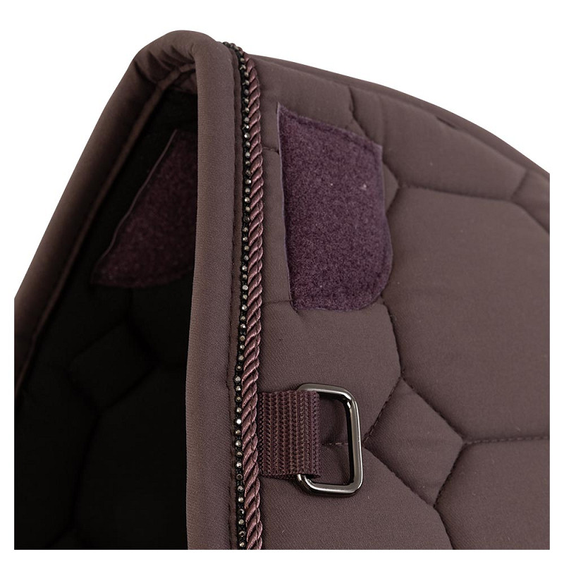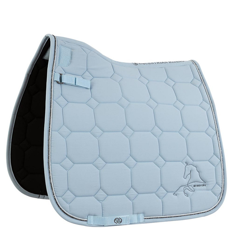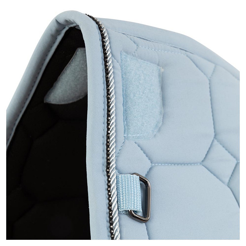 Underlag fremstillet i fugtregulerende materiale, som sikrer at hesten holdes tør under ridning. Flot pipe og bling hele vejen rundt samt flot diskret dekoration på siden. Kunstig pels forrest på underlaget beskytter manken. Pelsen sidder fast med velcro og kan nemt fjernes. Korte stropper til sadlens D-ringe, som ligeledes kan tages med velcro. Fås også i springmodel.