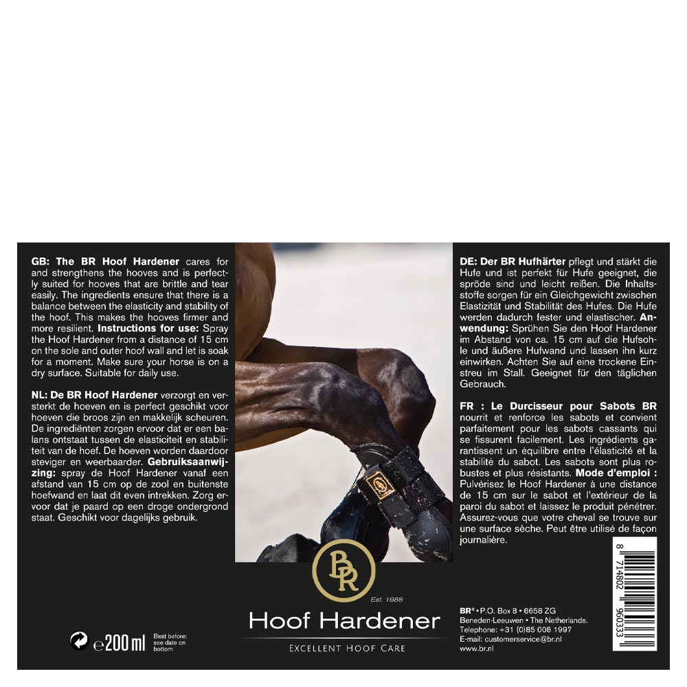 BR Hoof Hardener plejer og styrker hovene og er god til hove der er purøse og revner let.