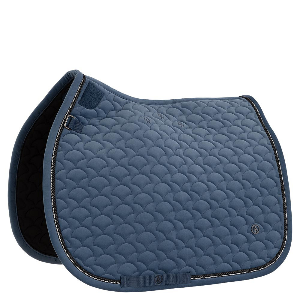 Virkelig smukt og stilfuldt velourunderlag med underside i fugtregulerende materiale, som hjælper til at holde hesten tør under ridning.