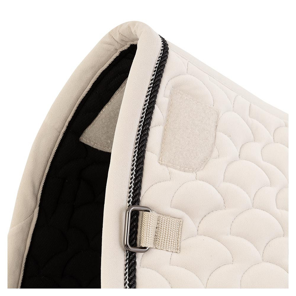 Virkelig smukt og stilfuldt velourunderlag med underside i fugtregulerende materiale, som hjælper til at holde hesten tør under ridning.