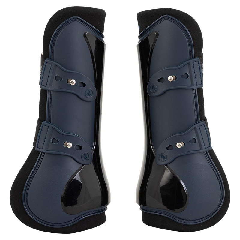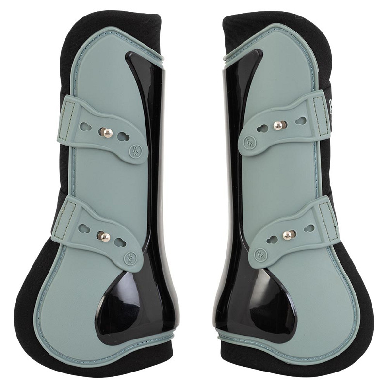 Springgamacher til forbenene med ekstra beskyttelse bag på for optimal beskyttelse af hestens sener.