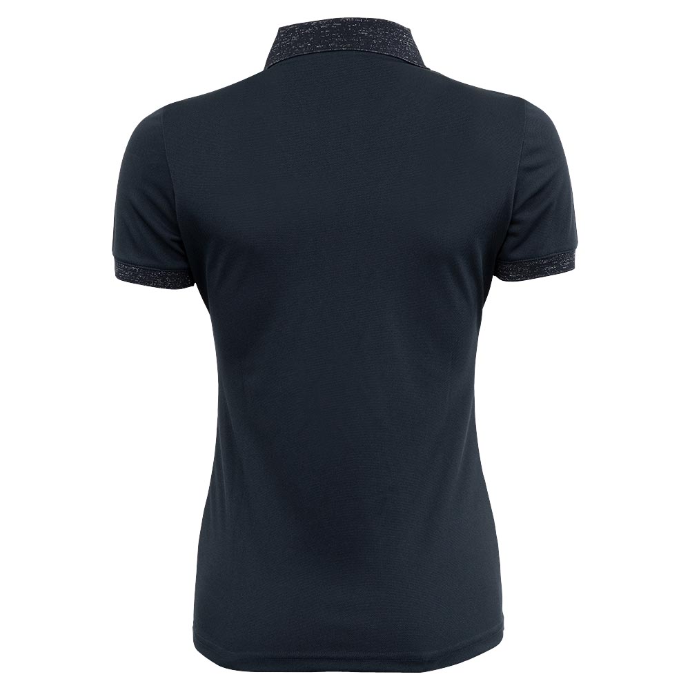 Lækker polo i svedabsoberende og hurtigttørrende materiale. Logo på bryst og ærmer samt glimmereffekt på krave og ved ærmer. Fin lynlås til brystet. En virkelig lækker t-shirt i fantastisk kvalitet. Normal i størrelsen.