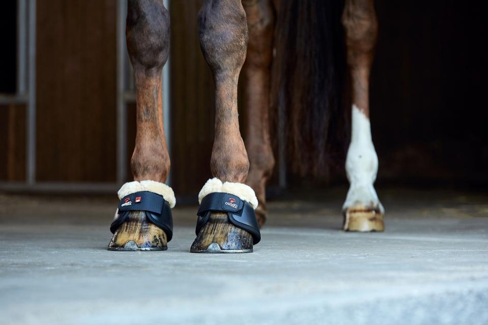 CATAGO Fir-Tech klokken er en funktionel og luksuriøs klokke med imiteret lammeskind langs kanten, som beskytter det sarte område i hestens kodebøjning. En lille forhøjning på klokkens inderside hjælper med at holde klokken på plads under ridning. Klokkens inderside er dækket af det velkendte Fir-Tech materiale, som indeholder partikler af keramisk ler. Det keramiske ler hjælper med at øge blodcirkulationen og holde sener og led smidige.