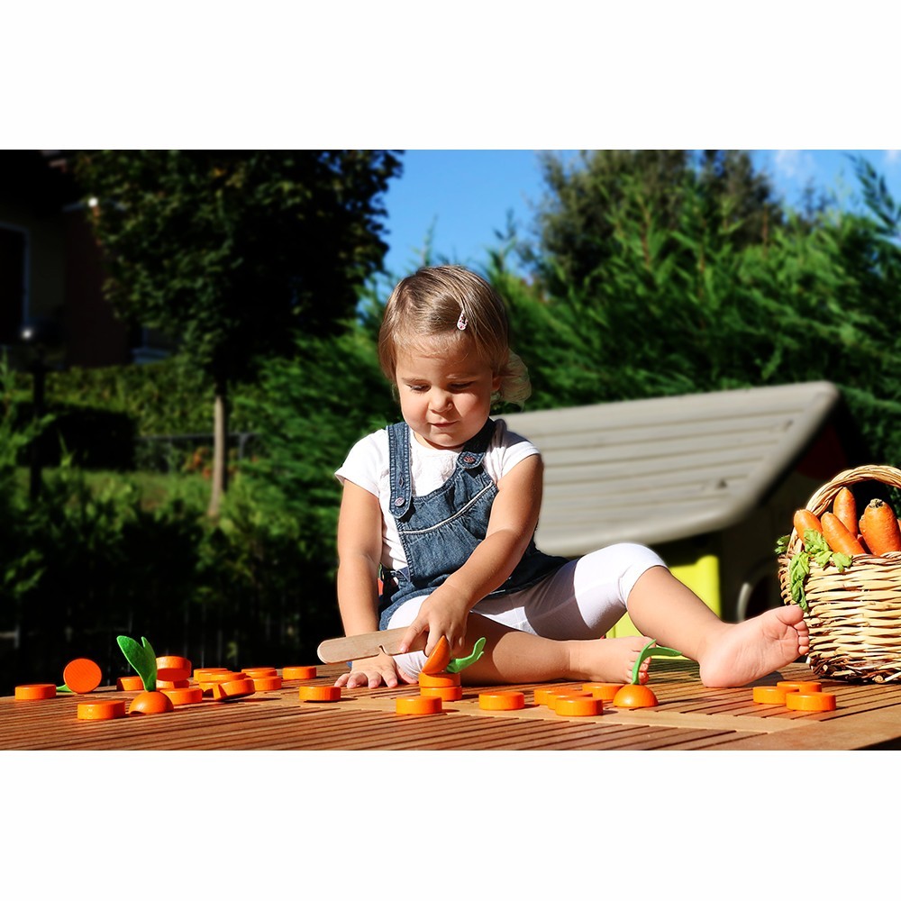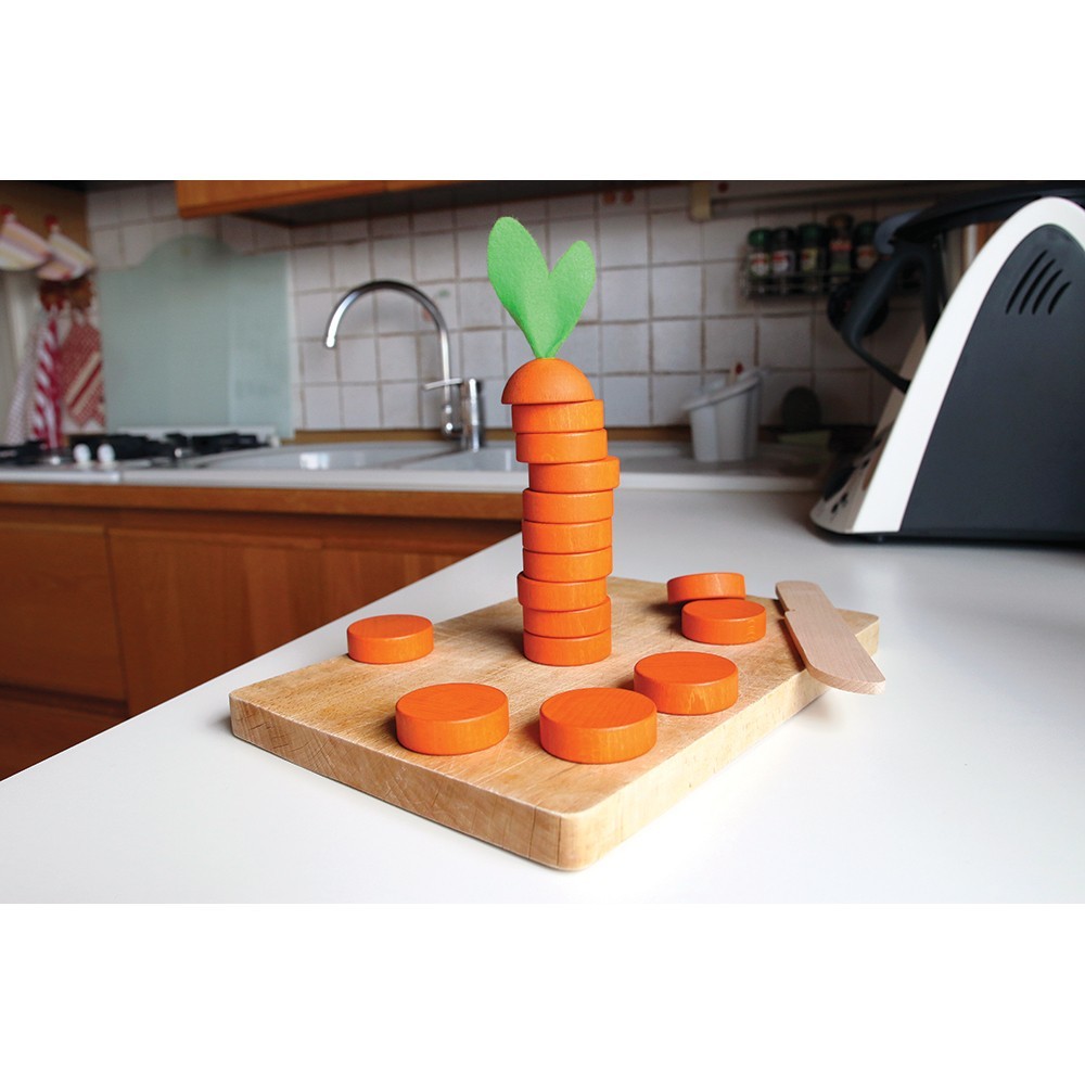Byg en gulerod ved at sætte de 8 skiver oven på hinanden og gulerodstoppen øverst. Den ældste spiller starter. Brug trækniven til at slå den nederste skive ud af guleroden med ét slag uden at guleroden vælter og uden at slå andre skiver ud samtidigt. Fortsæt med at slå de næste skiver ud. Fortsæt skive efter skive med at slå den nederste gulerodsskive ud, indtil gulerodstoppen ligger på legefladen. Du må kun slå én skive ud ad gangen. Du må aldrig røre skiverne med hænderne. For hver omgang får du 3 x bonushjælp: Max 3 gange pr. tur må du rette guleroden til med kniven så den står mere lige. Hvis det lykkes dig at hakke hele guleroden, er du stadig med i spillet. Hvis guleroden vælter, eller du slår andre skiver ud end den nederste, skal du tælle det antal skiver du har fjernet korrekt, og så er det næste spillers tur. Næste spiller prøver at fjerne skiver fra den genopbyggede gulerod med 8 gulerodsskiver.