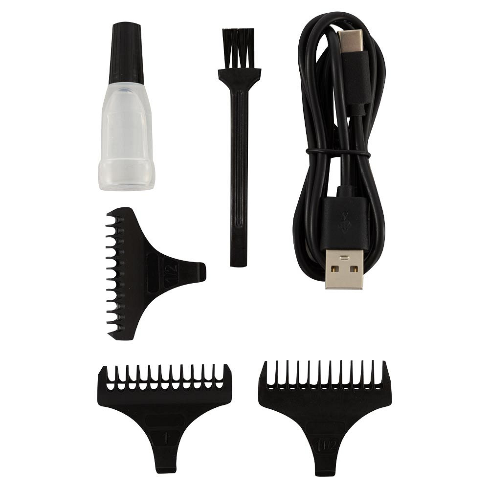 Der medfølger desuden børste og olie til klipperen.