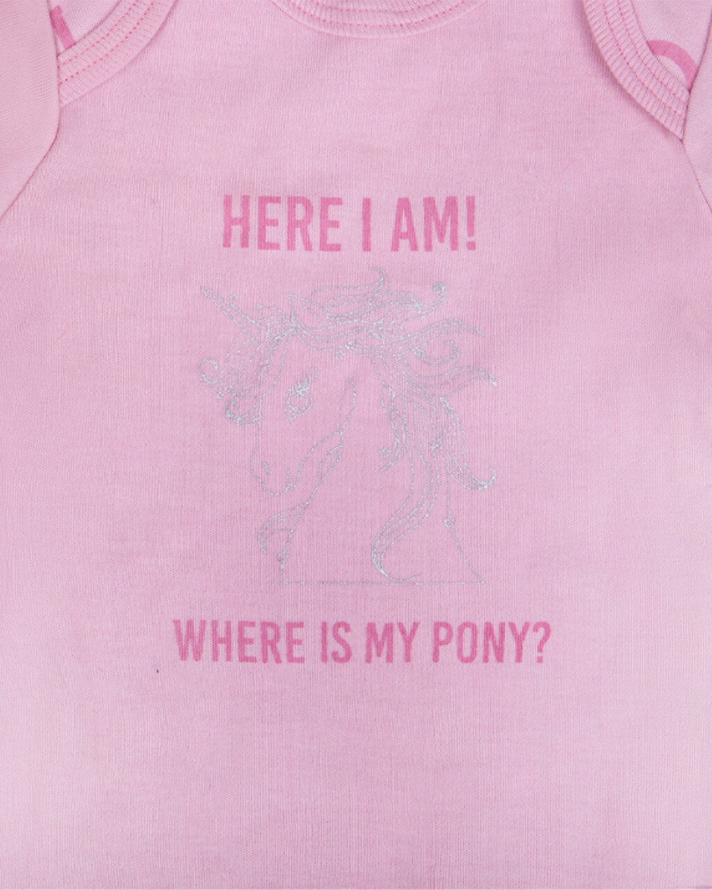 Virkelig sødt print foran med skrift og hestesko bagpå.