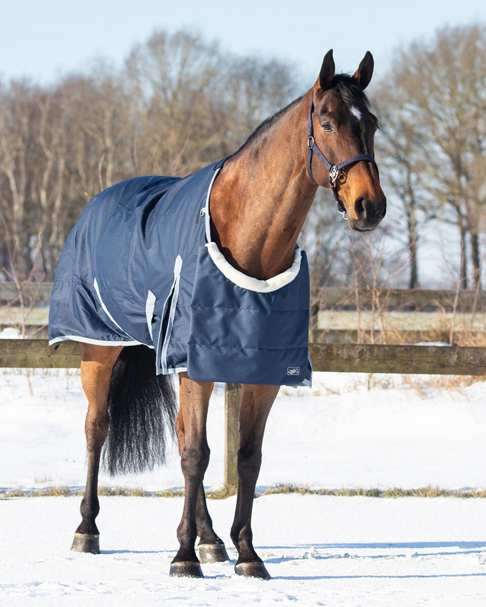 Sættes fast på kanten af dækkenet, hvor der øverst er en blød kant af imiteret lammeskind. Sættes fast omkring dækkenets nederste kant med velcro. På den måde beskyttes hestens bringe mod slid, uden at den skal have spændt noget under maven.