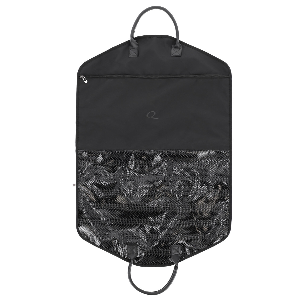 For nem transport har tasken to solide håndtag, og forsiden er delvist lavet i mesh, der giver optimal ventilation, så dit tøj forbliver frisk. Bagsiden er dekoreret med et eksklusivt krokoprint og et flot Q-logo, som giver tøjtasken et moderne og luksuriøst udtryk. Et transparent vindue gør det hurtigt at se, hvad tasken indeholder – perfekt til travle stævnedage.