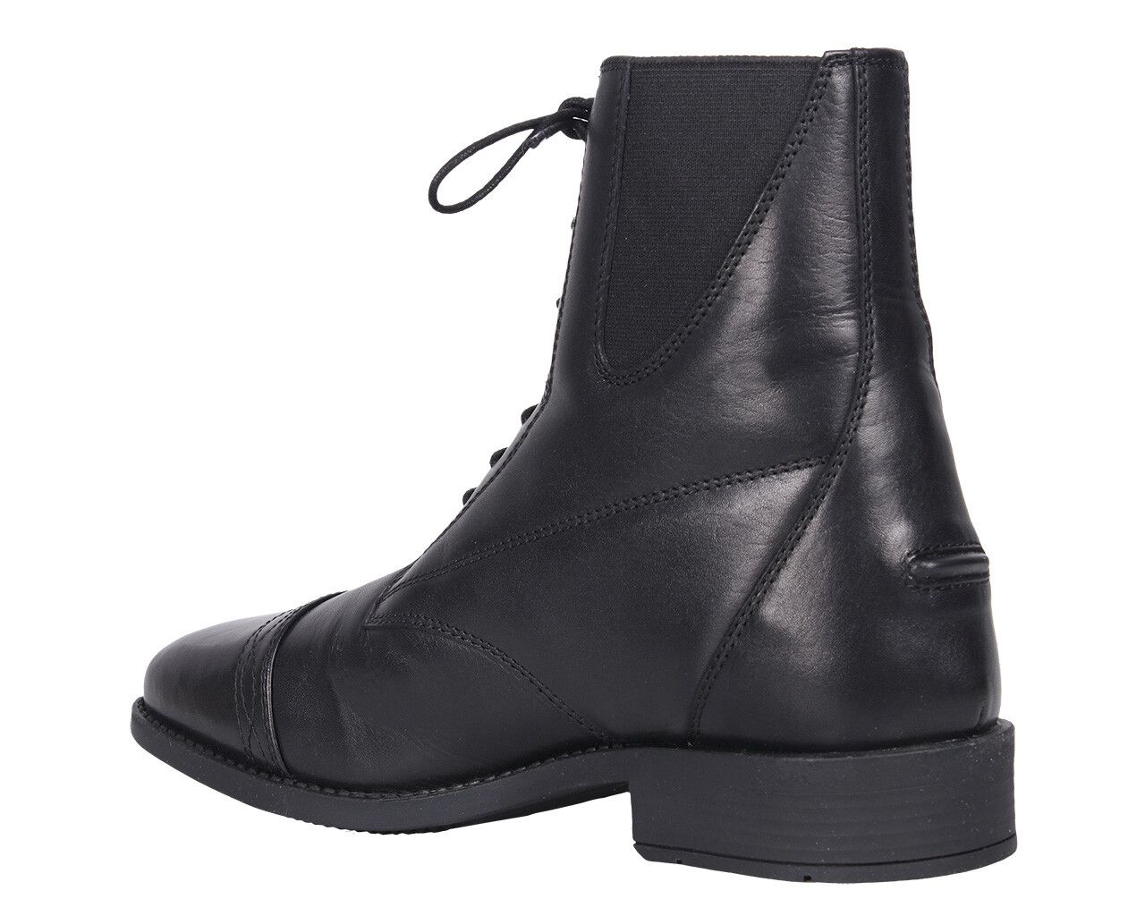 Smørbløde jodhpurs i læder med klassisk look og snører i rigtig god kvalitet. Ridestøvlerne har lynlås i siden samt elastik ved anklerne, som gør dem nemme at få af og på og komfortable. Desuden er læderet foret med blødt åndbart materiale, der bare gør at man får lyst til at beholde støvlerne på. Holder til sporerne bag på støvlen. Normale i størrelsen, men passer ikke til bred fod.