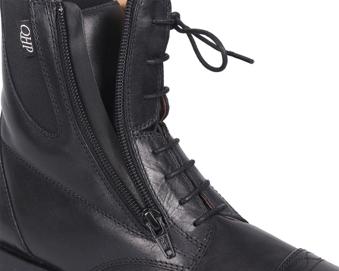 Ridestøvlerne har lynlås i siden samt elastik ved anklerne, som gør dem nemme at få af og på og komfortable.