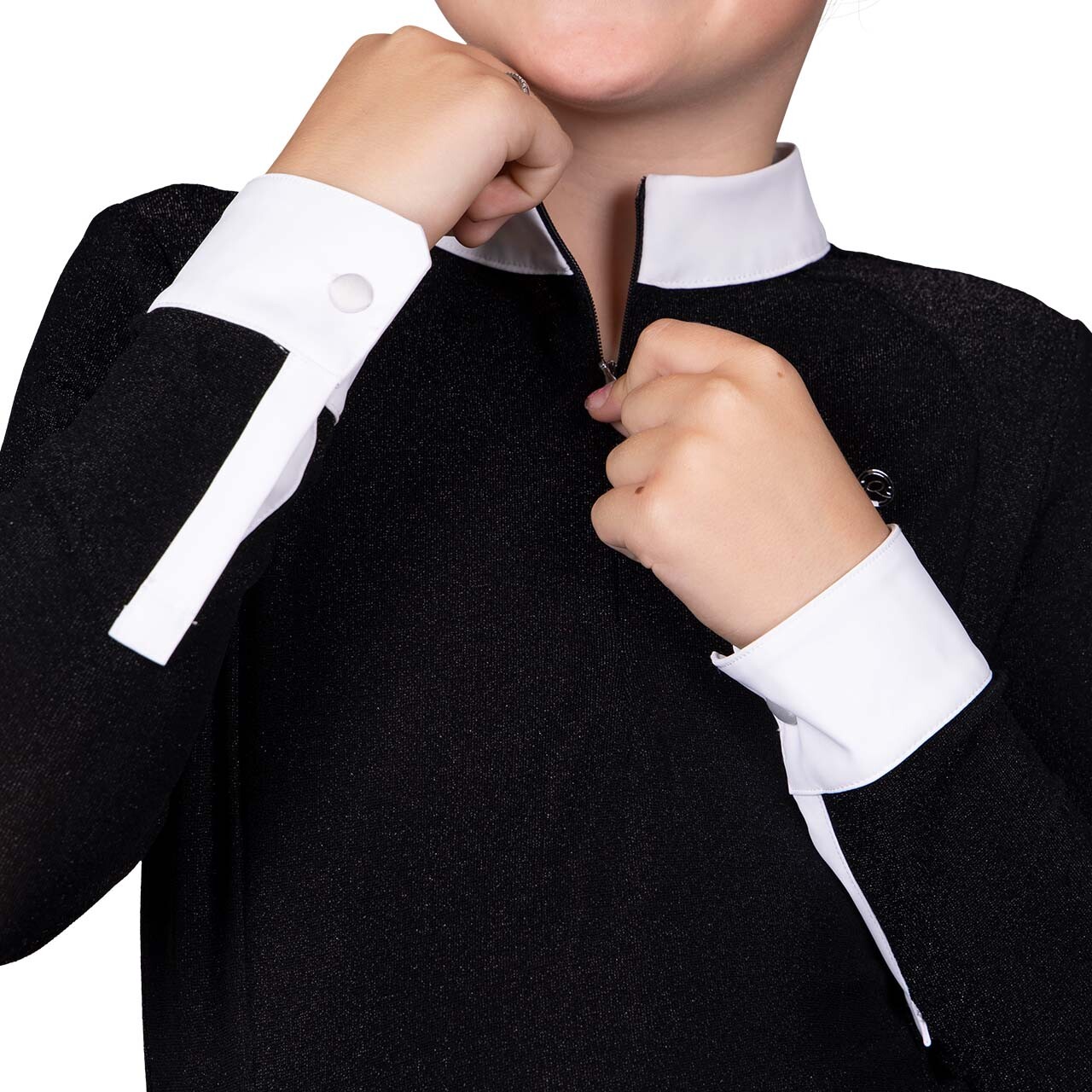 Super flot langærmet stævnebluse med usynlig lynlås foran, så den er nem at tage af og på.